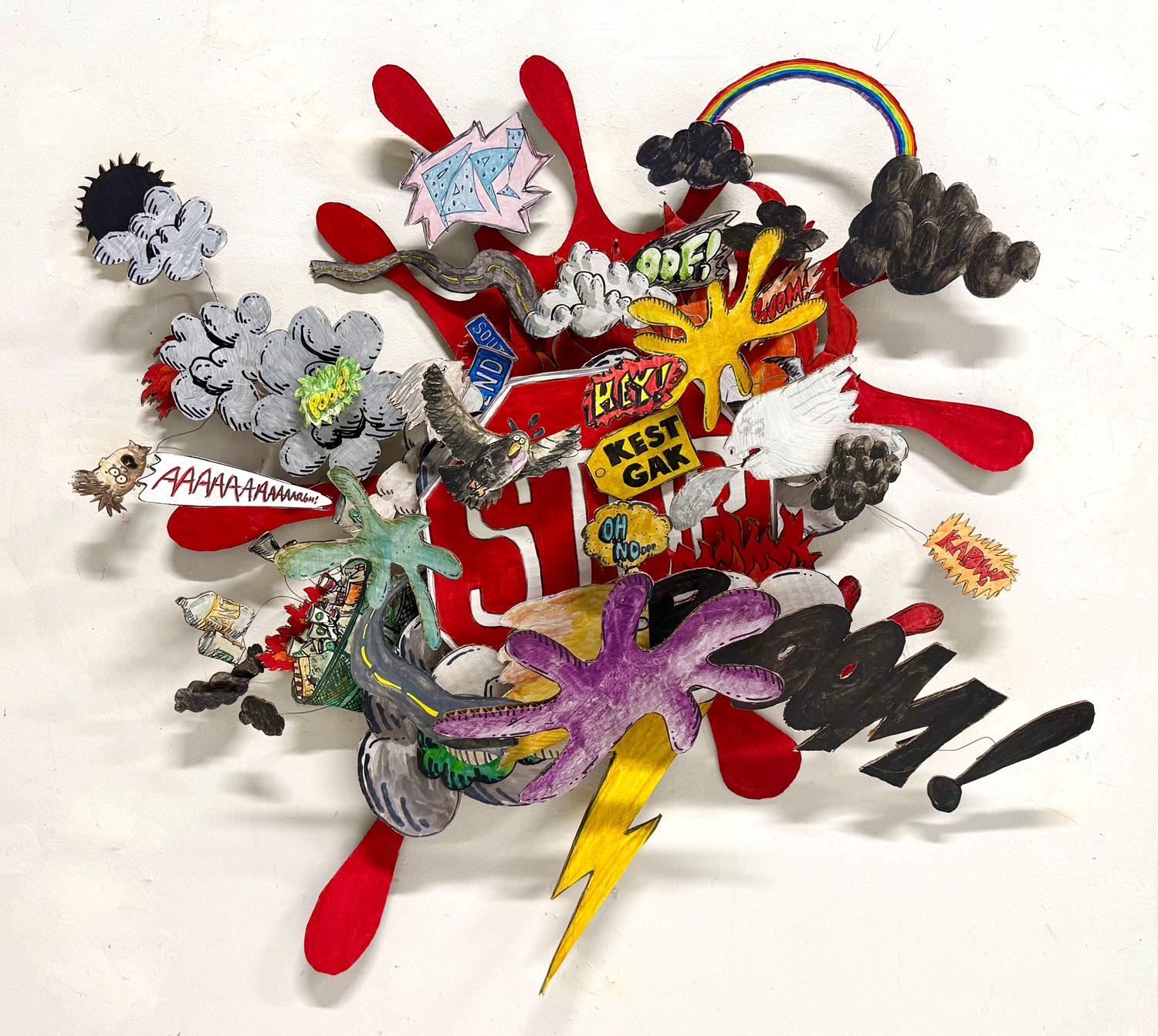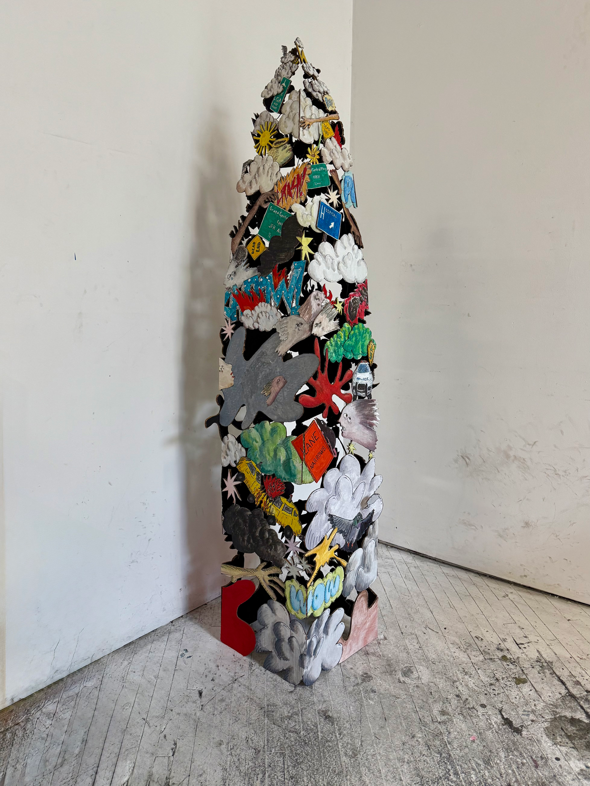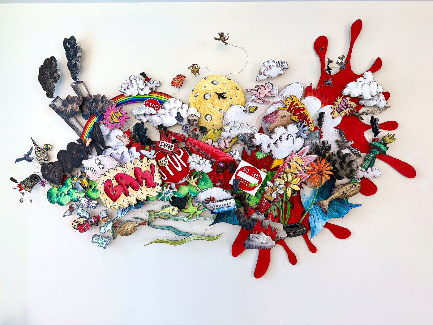 Cardboard, Gesso, Marker, Watercolor Paint, Hot Glue, wire.